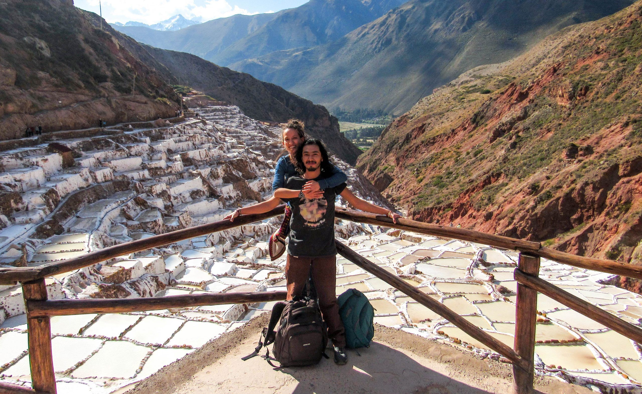 Salimos en un bus desde el centro de Cusco, hacia uno de los paisajes más llamativos del Valle Sagrado de los Incas, las Salineras de Maras. La ruta de 46 kilómetros serpenteaba entre montañas, algunas de ellas con picos nevados, llanuras verdes y amarillas con llamas pastando, y la luz brillante de los primeros rayos del sol. Queríamos conocer el lugar del que se extrae la sal rosada natural en Perú, uno de los pocos en el mundo.